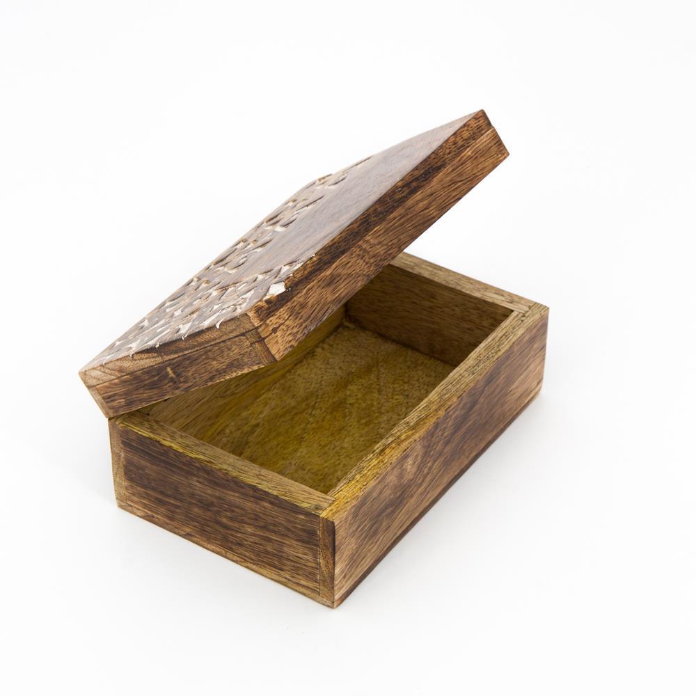 Scatola legno quadrata foglie 10x10x7cm Accedi per vedere i prezzi