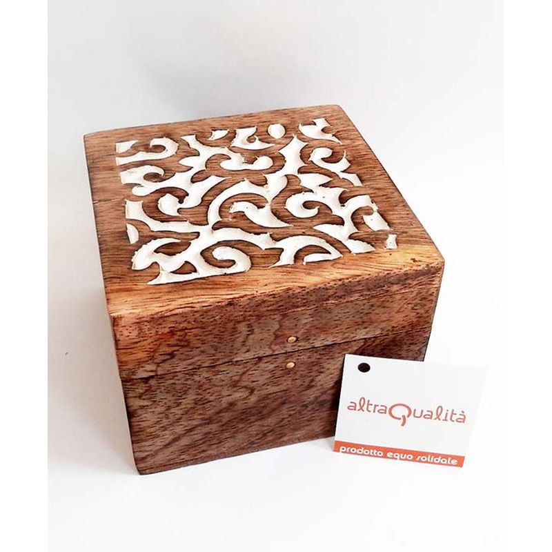 Home BOMBONIERE Matrimonio Scatola legno Intarsi 10x10x8cm