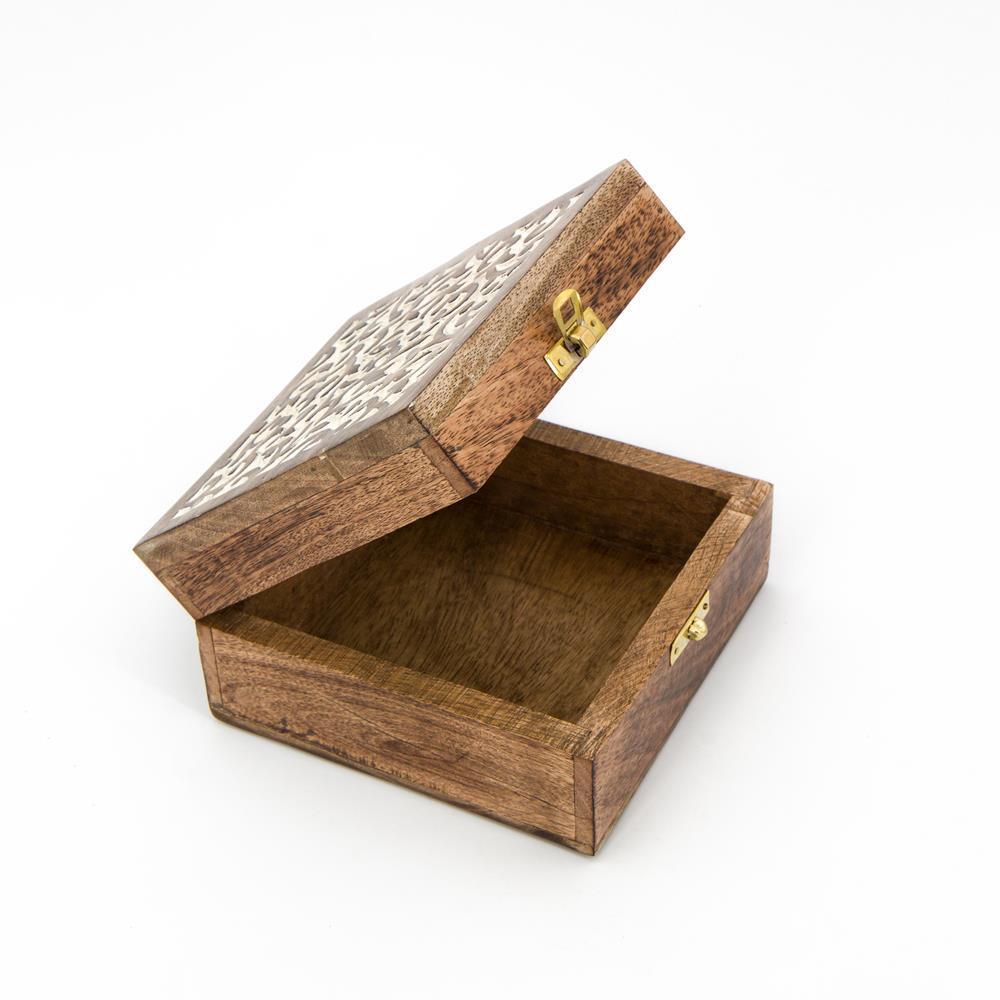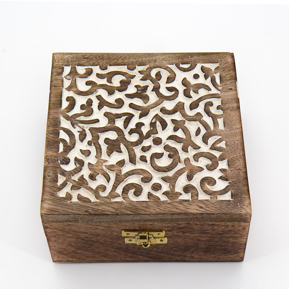 Scatola legno quadrata floreale15,5×15,m
