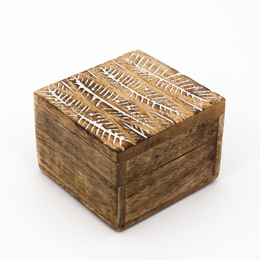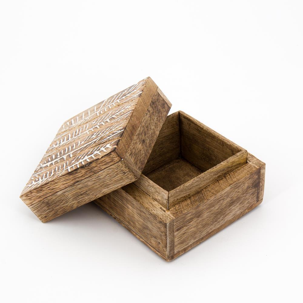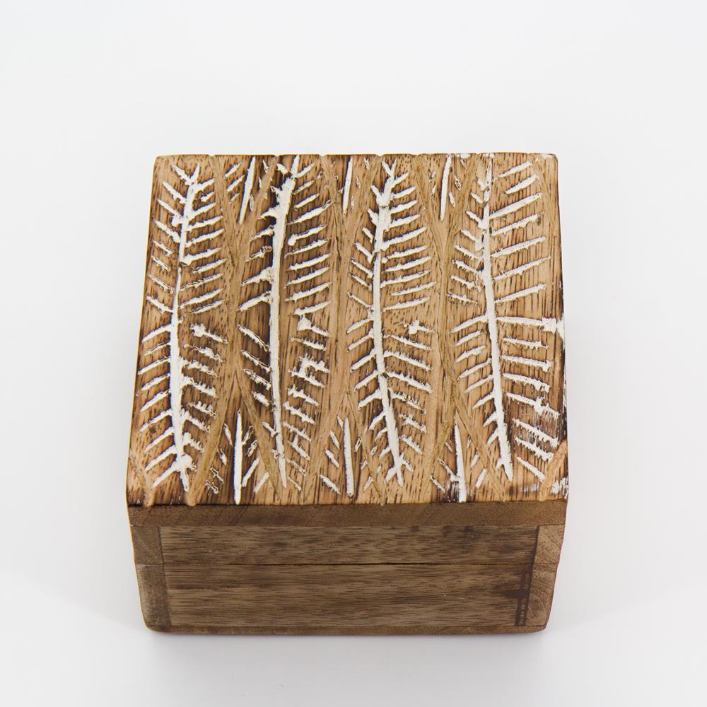 Scatola legno quadrata foglie 10x10x7cm