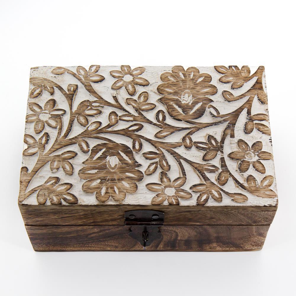 Scatola legno rettangolare fiorita
