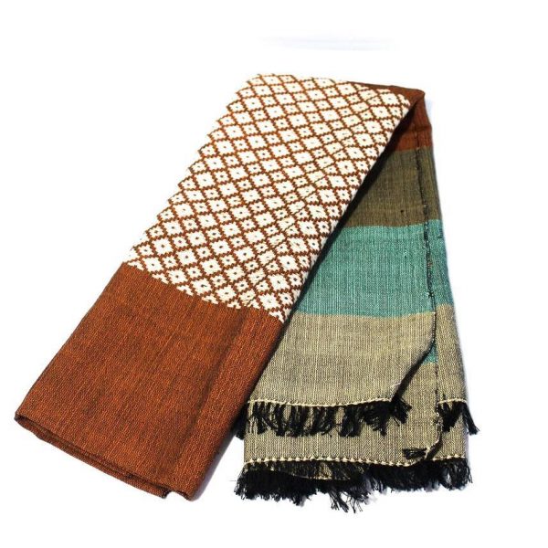 Sciarpa in cotone al telaio manuale multicolore con motivo nido d’ape.