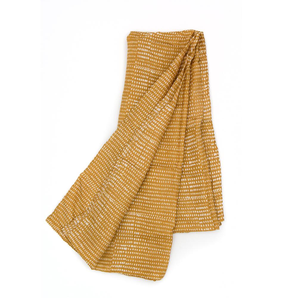 Sciarpa in seta stampata, fantasia a pois bianco su ocra