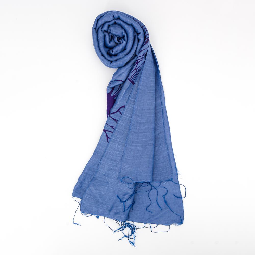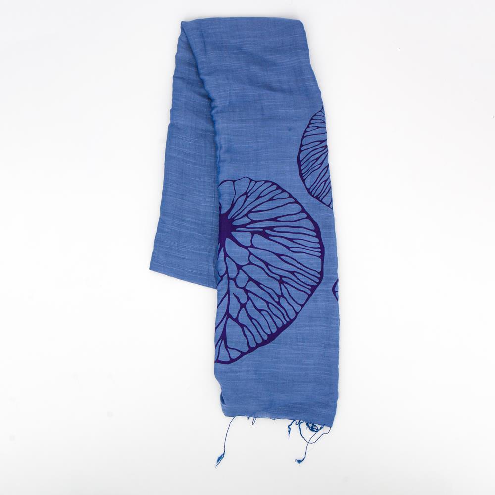 Sciarpa in cotone e seta stampa fiore di loto, blu