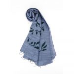 Sciarpa stampa foglie e rametto blu