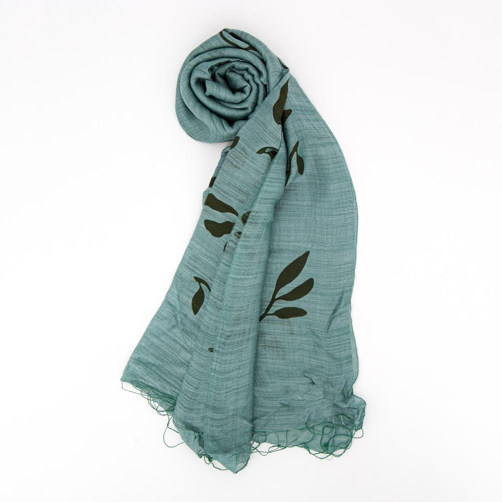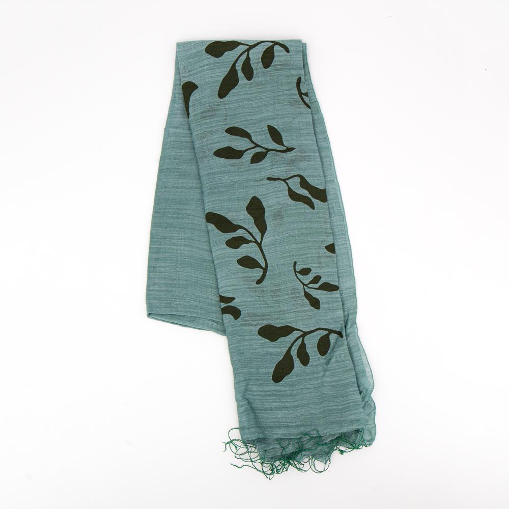Sciarpa stampa foglie e rametto Verde