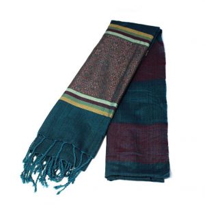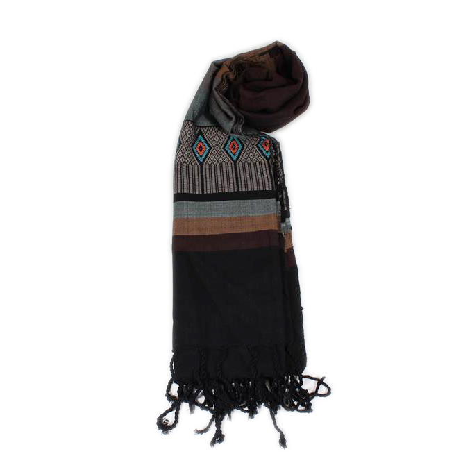 Sciarpa in viscosa jaquard lavorato al telaio manuale con motivo tradizionale Hmong Vietnamita multicolore.