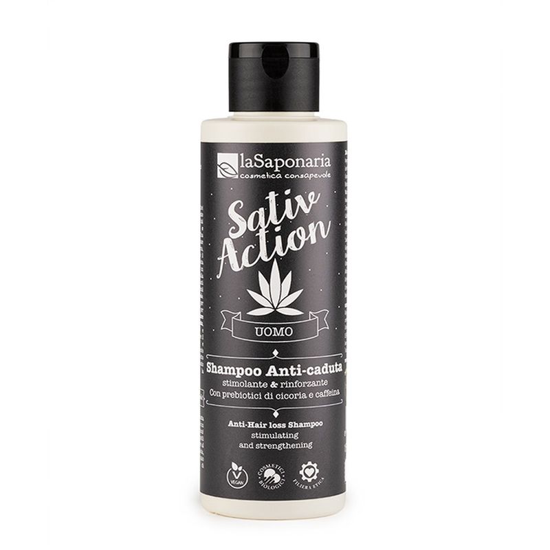 Un concentrato di attivi naturali per questo shampoo anti-caduta dal potere stimolante e rinforzante. Una speciale formula a base di prebiotici di cicoria, utili per rinforzare il naturale microbiota cutaneo e creare un ambiente favorevole alla salute dei capelli e tanti attivi naturali dall’efficacia stupefacente. Contiene caffeina, per donare energia e per contribuire a rallentare il processo di caduta, canapa e menta e zenzero per rinforzare il fusto, rinvigorire e stimolare il microcircolo cutaneo. Il mix perfetto per il tuo alleato quotidiano contro la perdita di capelli.