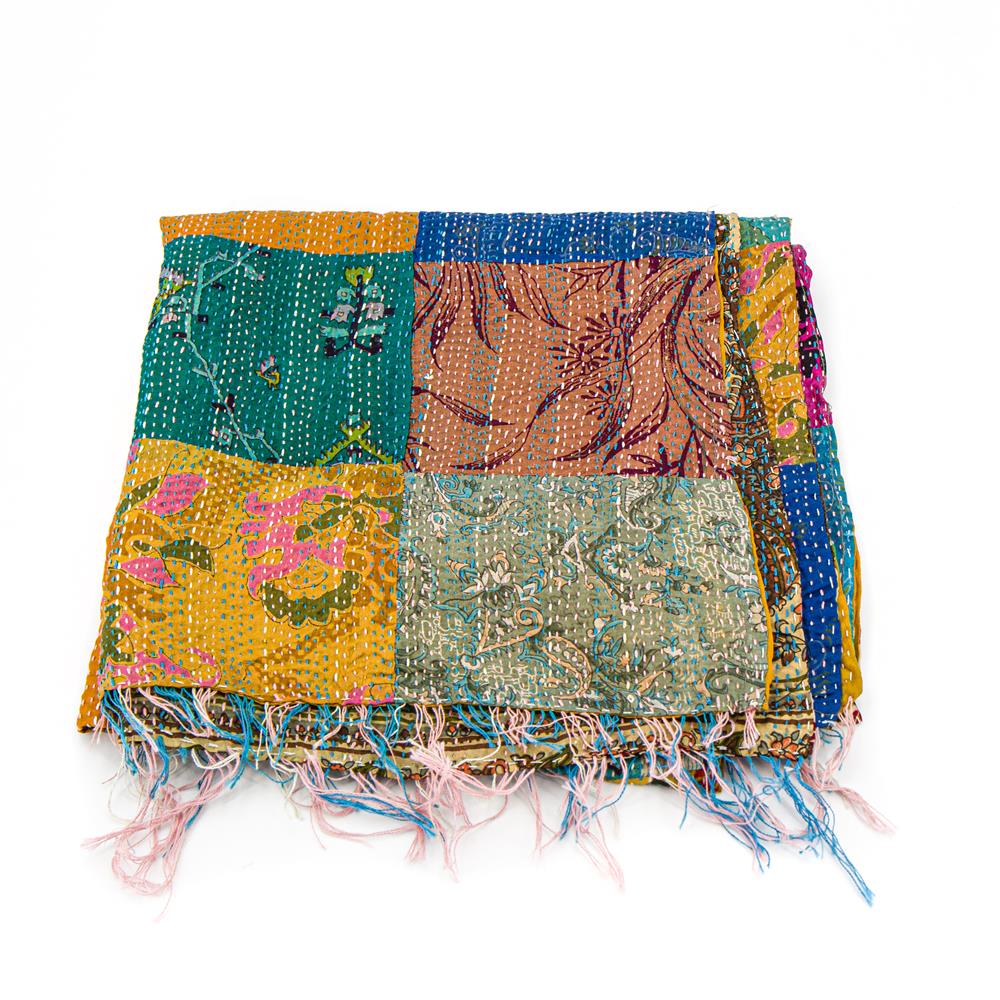 Stola patchwork sari riciclato seta ricamo Kantha