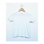 Maglia girocollo manica corta, collo in doppio rib 2 cm con cucitura ribattuta a due aghi, bordo inferiore e bordi maniche rifiniti con cucitura ribattuta a due aghi.