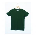 Maglia girocollo manica corta, collo in doppio rib 2 cm con cucitura ribattuta a due aghi, bordo inferiore e bordi maniche rifiniti con cucitura ribattuta a due aghi.