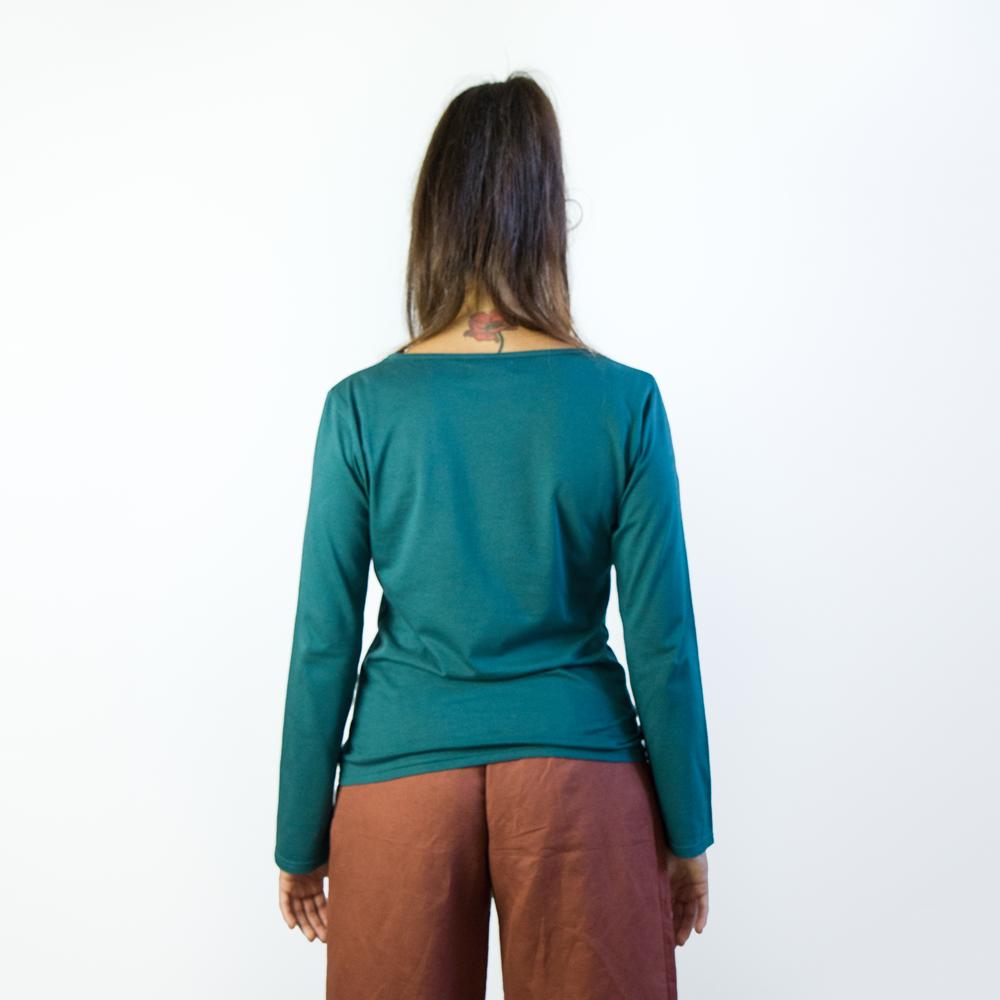 shirt donna manica lunga Bateau color petrolio 100% cotone certificata GOTS e Fairtrade jersey cotone 145 g