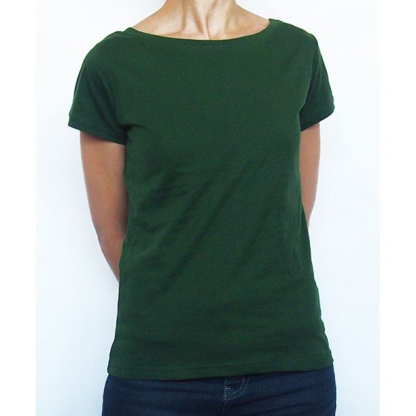 Maglia collo a barchetta manica corta, colletto e bordi maniche rifiniti in jersey doppio (100% cotone) bordo inferiore rifinito con cucitura ribattuta a 2 aghi