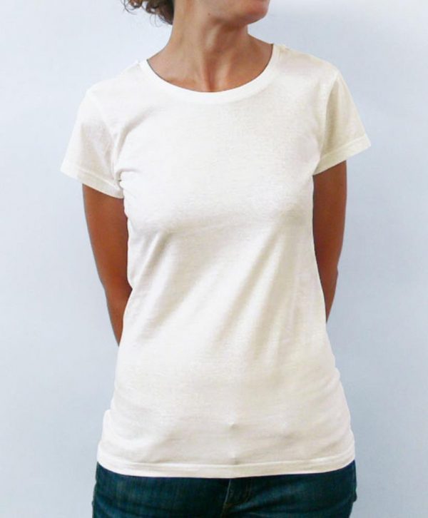 Maglia sfiancata, ampia scollatura arrotondata, maniche corte ad aletta, bordi sottili per collo e maniche rifiniti in jersey doppio (100% cotone) bordo inferiore rifinito con cucitura ribattuta a due aghi.