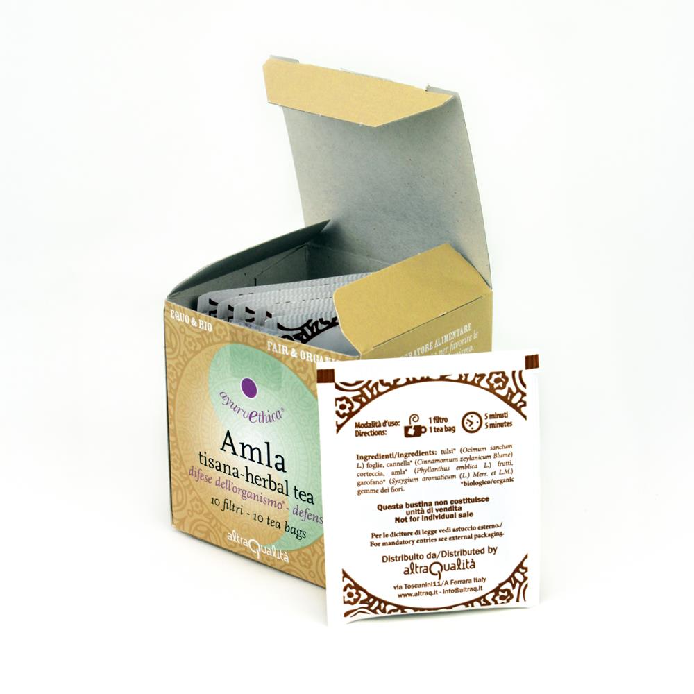 IIngredienti: tulsi* (Ocimum sanctum L.) foglie, cannella* (Cinnamomum zeylanicum Blume) corteccia, amla*