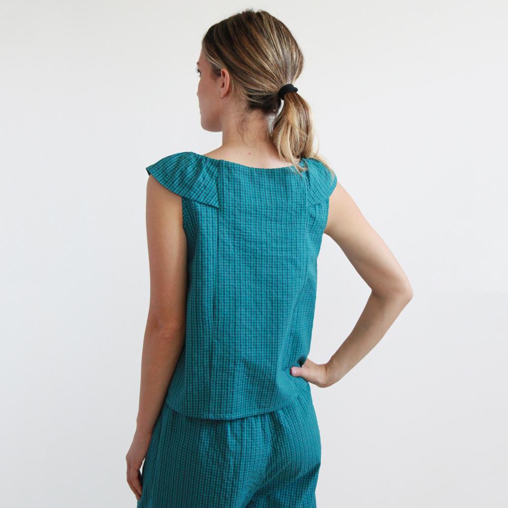 Top Manioca cotone seersucker scacchi M