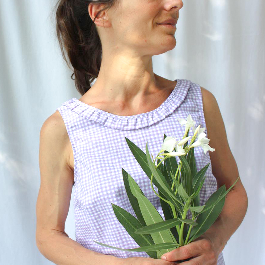 Top Mina stampa a quadri lavanda L