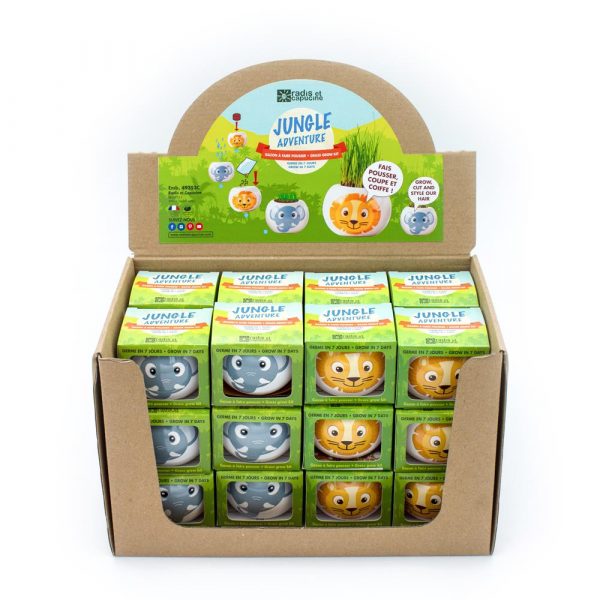 Esplora la magia della natura con i nostri mini vassetti della giungla, un’esperienza incantevole e giocosa per i più piccoli. Ogni vasetto è un amico della giungla, con la faccia adorabile di un animale e un segreto nascoto: annaffiandolo, vedrai crescere i suoi “capelli” in soli 7gg, rendendo ogni vasetto un vero e proprio personaggio vivente!