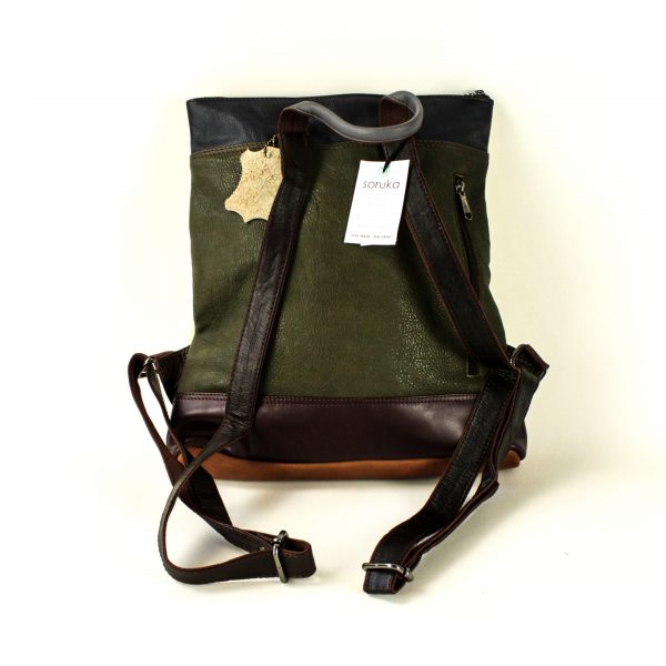Soruka- La foto è rappresentativa del solo MODELLO della borsa e non della combinazione di colore del pellame!! Zaino multicolore e fantasie dotato di un ampio scomparto unico chiuso da una zip . Tasca posteriore esterna con chiusura a zip. All’interno, due taschini a scomparto e ulteriore tasca con chiusura a zip. Interno rivestito in morbido tessuto. Accessorio in pelle liscia. Accessorio corredato da spallacci regolabili.