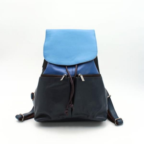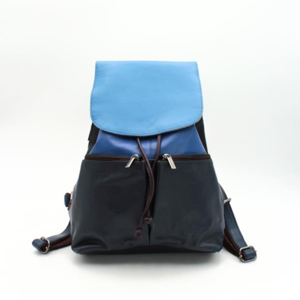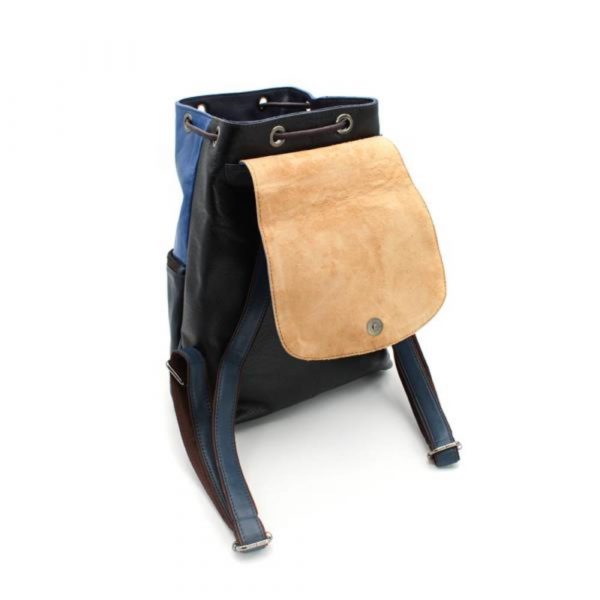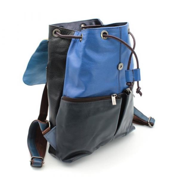Zaino in morbida nappa bovina. Unico scomparto con patta tondeggiante e chiusura con magnete, presenta anche un laccio regolabile per la chiusura. Due tasche esterne con zip ed una tasca piatta con zip al suo interno. Spallucci regolabili.
