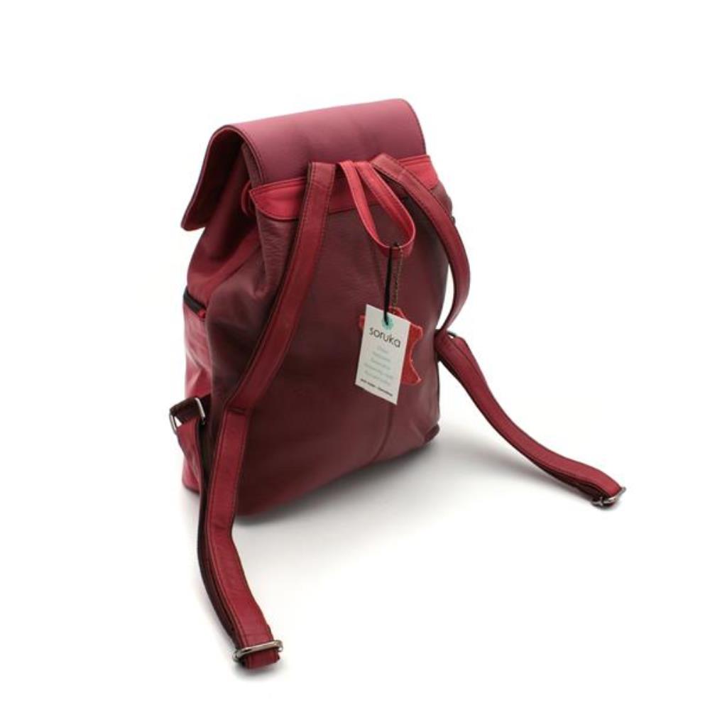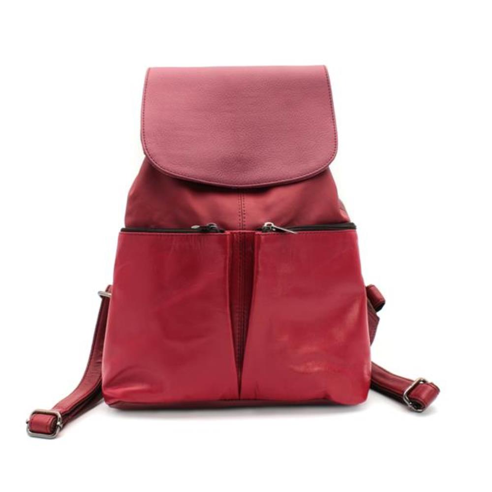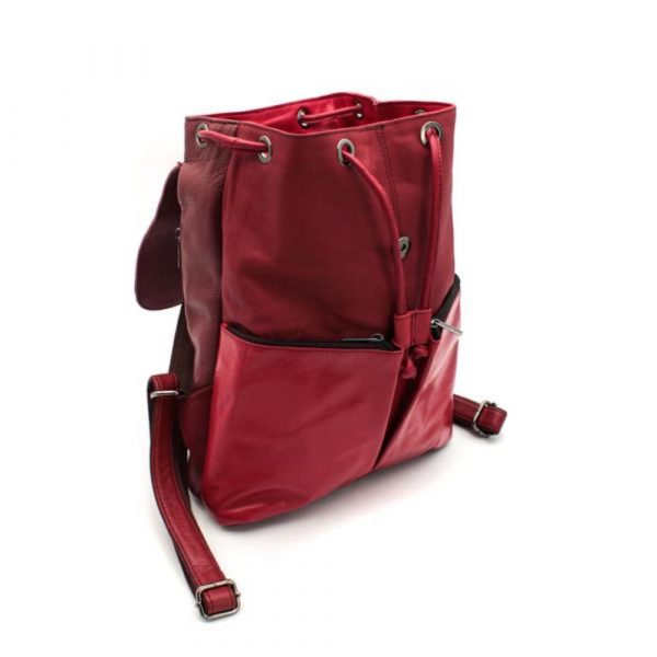 Zaino in morbida nappa bovina. Unico scomparto con patta tondeggiante e chiusura con magnete, presenta anche un laccio regolabile per la chiusura. Due tasche esterne con zip ed una tasca piatta con zip al suo interno. Spallucci regolabili.