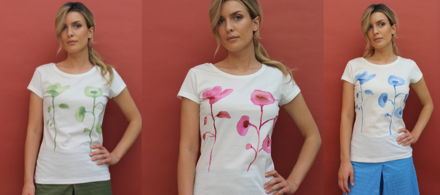 Sono dipinte a mano, una ad una, con colori realizzati direttamente in laboratorio, queste t-shirt in tessuto di cotone bio e fairtrade ispirate alla serie Les fleurs dell’artista Louise Bourgeois che esprimono la creatività e l’abilità delle artigiane fiorentine del laboratorio Ratafià, creando una vera e propria poesia su tessuto, in edizione limitata.