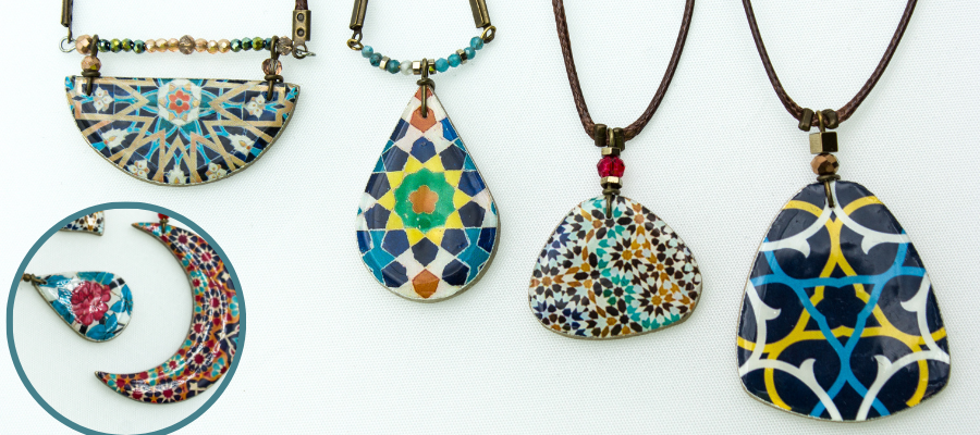Come portare con sè bellezza, storia e cultura? Basta guardare un pendente di Papital per essere trasportati lontano, in ambienti meravigliosi, avvolti dal profumo dell’acqua di rose e dalle fragranze delle spezie, nell’antica Persia, regno di incanti e di bellezza. Ogni collezione Papital è, infatti, ispirata ai pattern delle piastrelle tradizionali che decorano i principali luoghi storici iraniani, riprendendone simboli e colori.